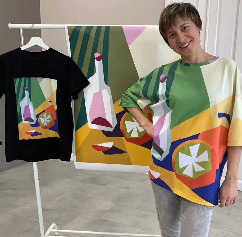 In collaboration with Artograph, Evgenia’s harmonious, color‑rich compositions are translated into prints that bring energy, warmth, and a sense of balance into everyday wear, turning garments into uplifting visual accents.